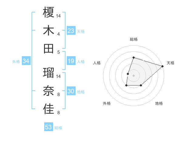 榎木田 瑠奈佳さんの天格は23画の5点!