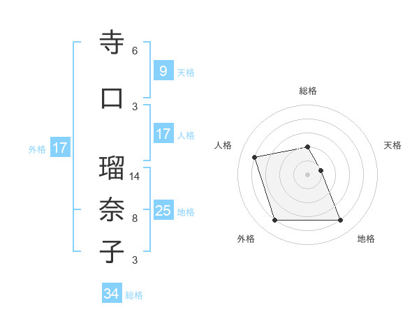 寺口 瑠奈子さんの人格は17画の4点!