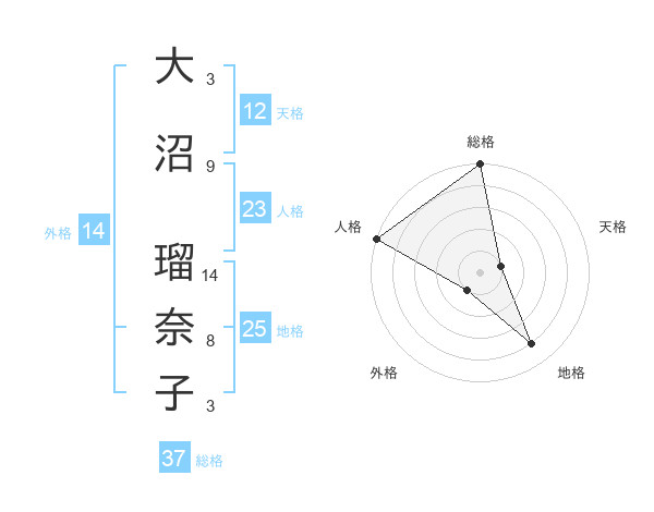 大沼 瑠奈子さんの総格は37画の5点!