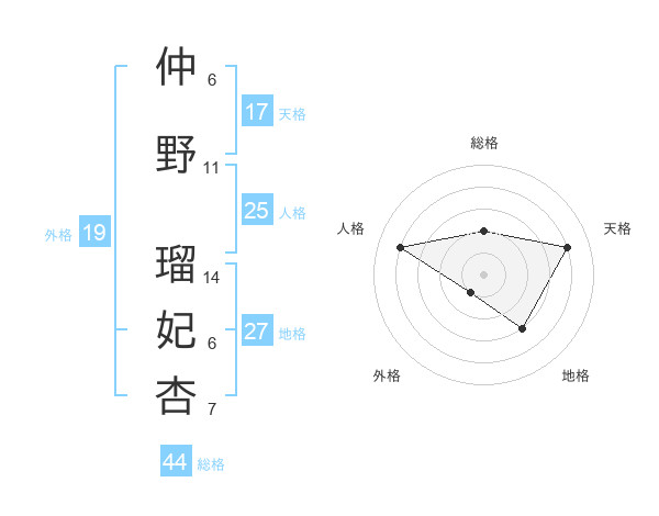 仲野 瑠妃杏さんを姓名の画数から五運を鑑定