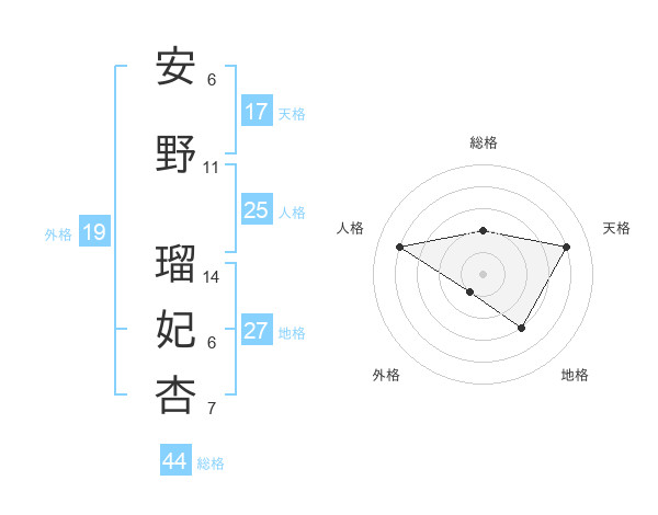 安野 瑠妃杏さんの天格は17画の4点!
