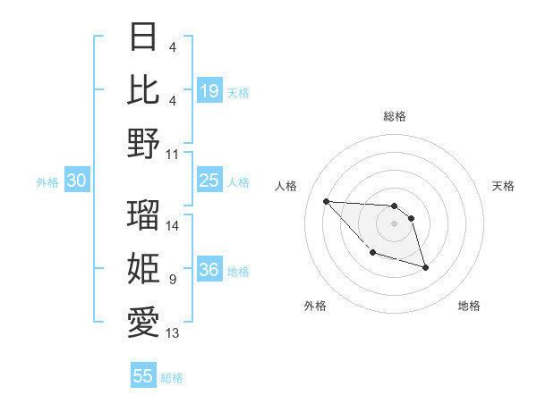 日比野 瑠姫愛さんを姓名の画数から五運を鑑定