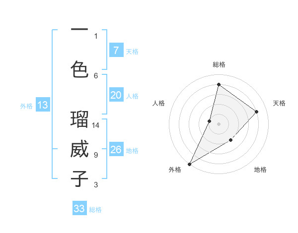 一色 瑠威子さんの外格は13画の5点!