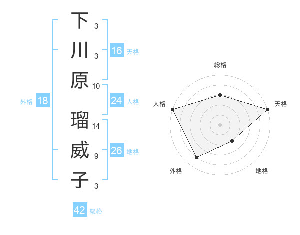 下川原 瑠威子さんを姓名の画数から五運を鑑定
