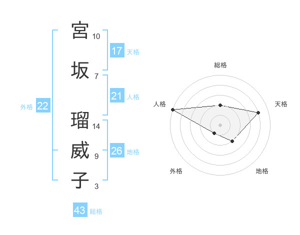 宮坂 瑠威子さんの天格は17画の4点!
