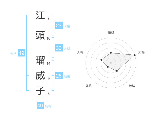 江頭 瑠威子さんの天格は23画の5点!