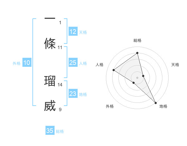 一條 瑠威さんを姓名の画数から五運を鑑定