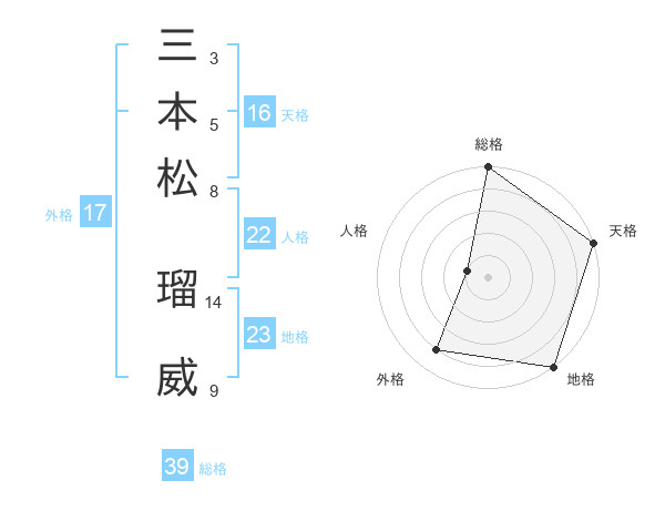 三本松 瑠威さんの外格は17画の4点!