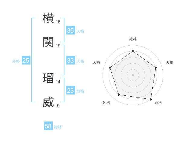 横関 瑠威さんの天格は35画の4点!
