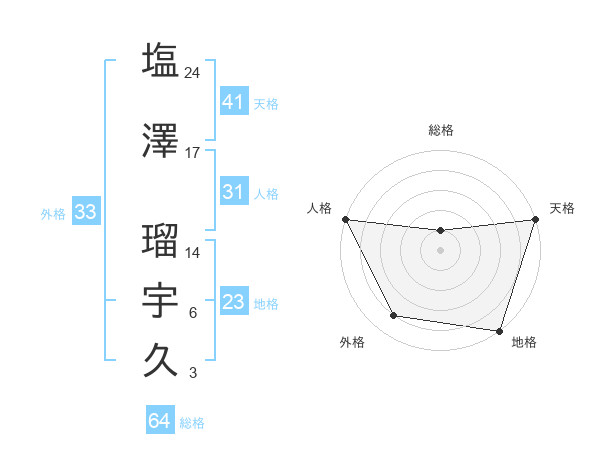 塩澤 瑠宇久さんを姓名の画数から五運を鑑定
