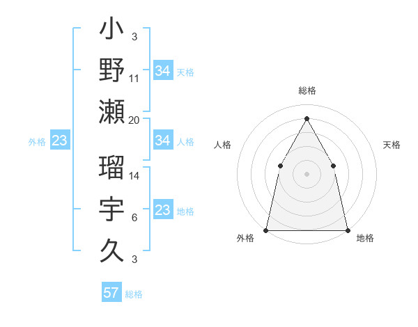 小野瀬 瑠宇久さんの総格は57画の4点