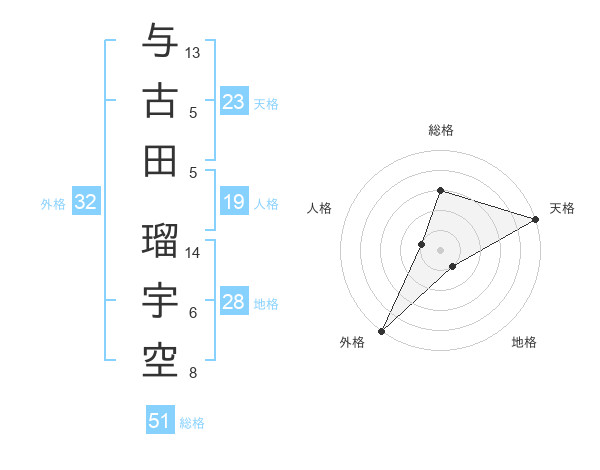 与古田 瑠宇空さんを姓名の画数から五運を鑑定