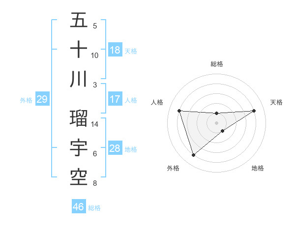 五十川 瑠宇空さんを姓名の画数から五運を鑑定