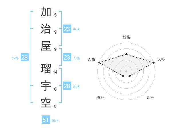 加治屋 瑠宇空さんの総格は51画の3点!