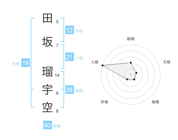 田坂 瑠宇空さんを姓名の画数から五運を鑑定