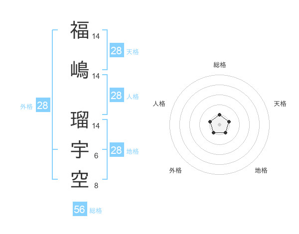 福嶋 瑠宇空さんを姓名の画数から五運を鑑定