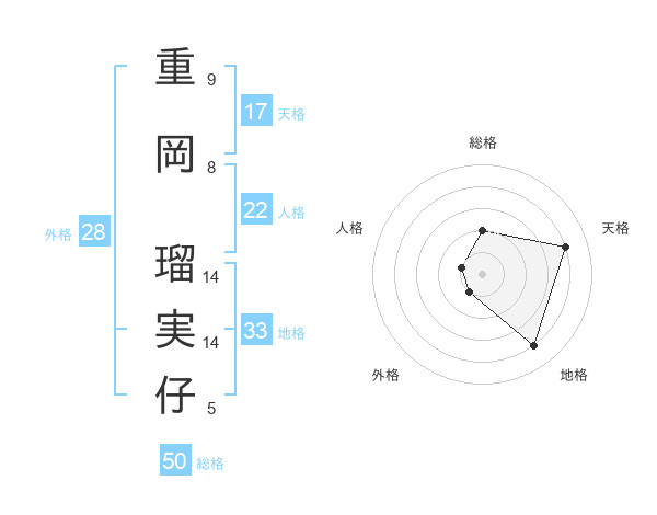 重岡 瑠実仔さんを姓名の画数から五運を鑑定