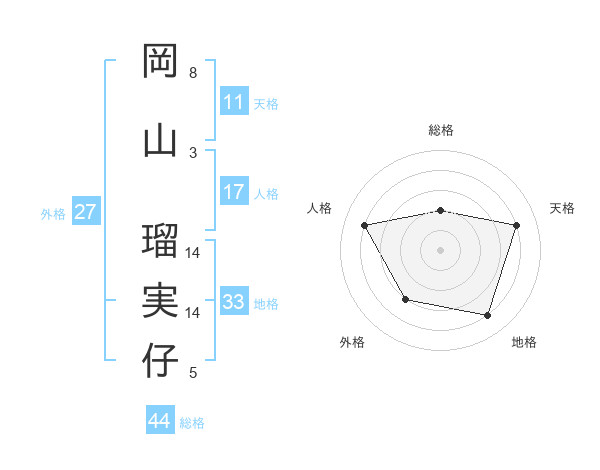 岡山 瑠実仔さんを姓名の画数から五運を鑑定