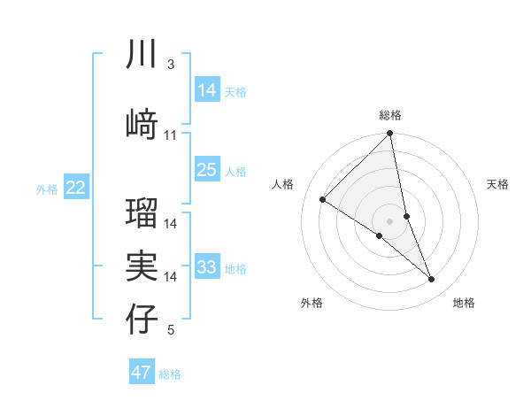 川﨑 瑠実仔さんの総格は47画の5点!
