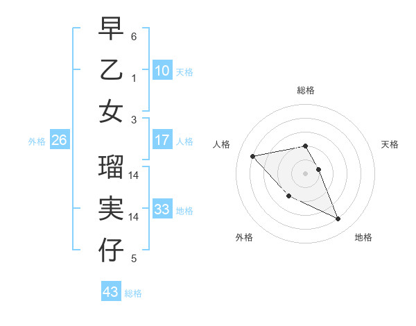 早乙女 瑠実仔さんを姓名の画数から五運を鑑定