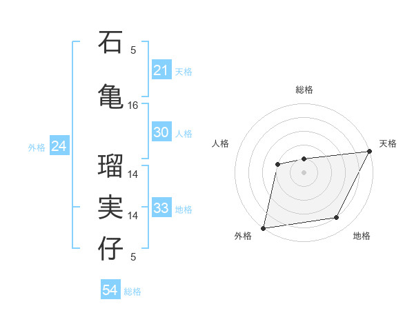 石亀 瑠実仔さんを姓名の画数から五運を鑑定