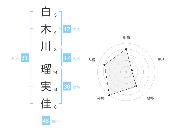 白木川 瑠実佳さんの総格は48画の4点!