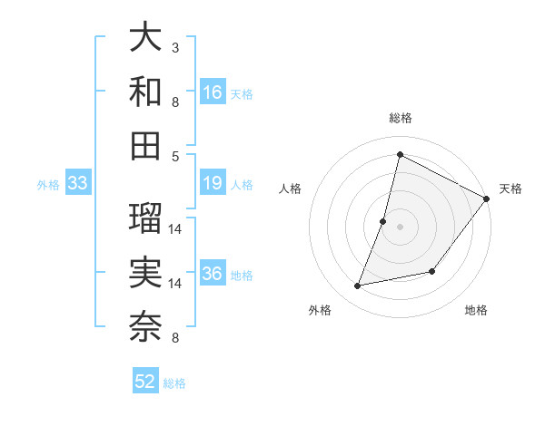 大和田 瑠実奈さんを姓名の画数から五運を鑑定