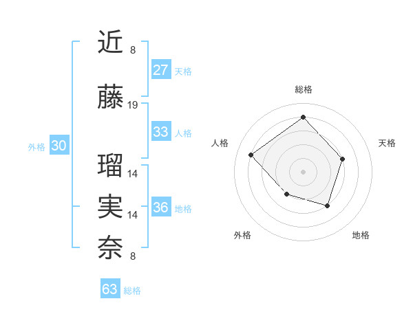 近藤 瑠実奈さんを姓名の画数から五運を鑑定