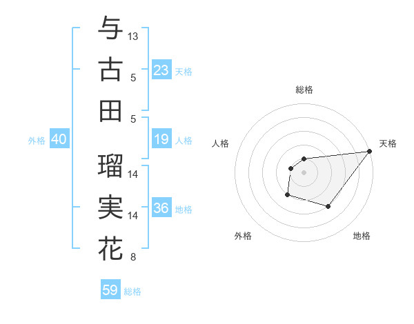 与古田 瑠実花さんの天格は23画の5点!