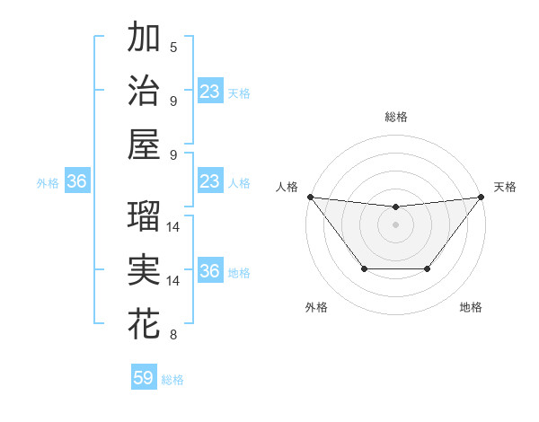 加治屋 瑠実花さんの天格は23画の5点