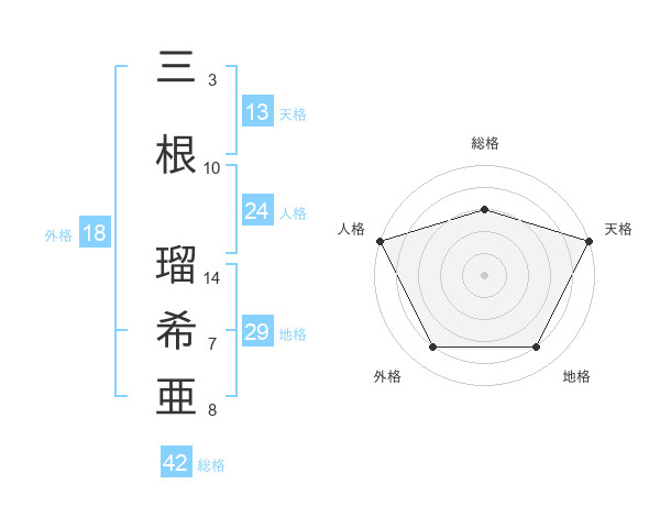 三根 瑠希亜さんを姓名の画数から五運を鑑定
