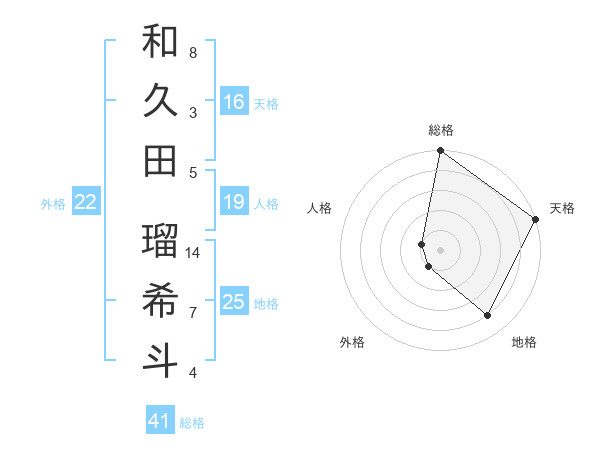 和久田 瑠希斗さんを姓名の画数から五運を鑑定