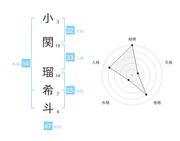 小関 瑠希斗さんを姓名の画数から五運を鑑定