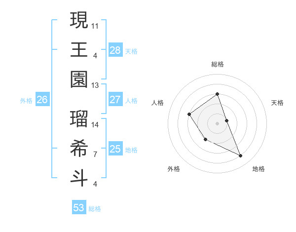 現王園 瑠希斗さんの天格は28画の1点!