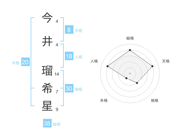 今井 瑠希星さんを姓名の画数から五運を鑑定