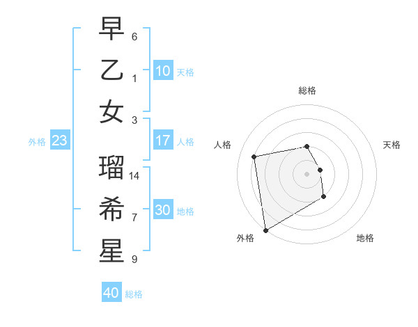早乙女 瑠希星さんを姓名の画数から五運を鑑定