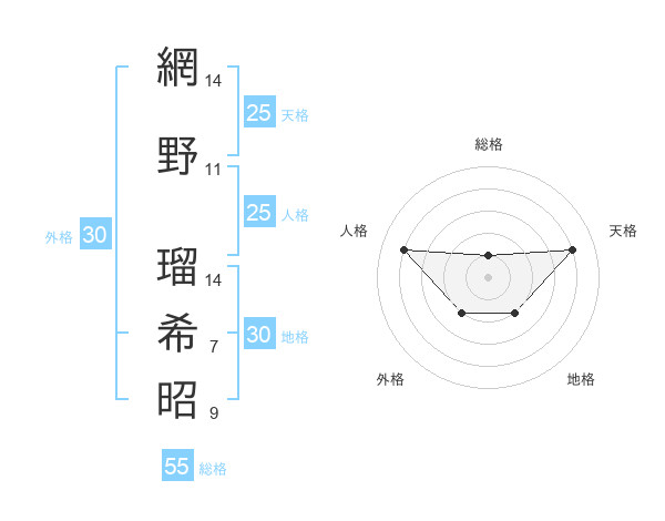 網野 瑠希昭さんを姓名の画数から五運を鑑定