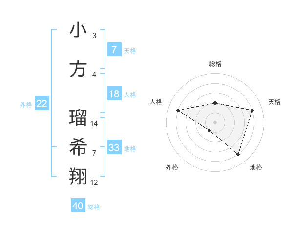 小方 瑠希翔さんの総格は40画の2点