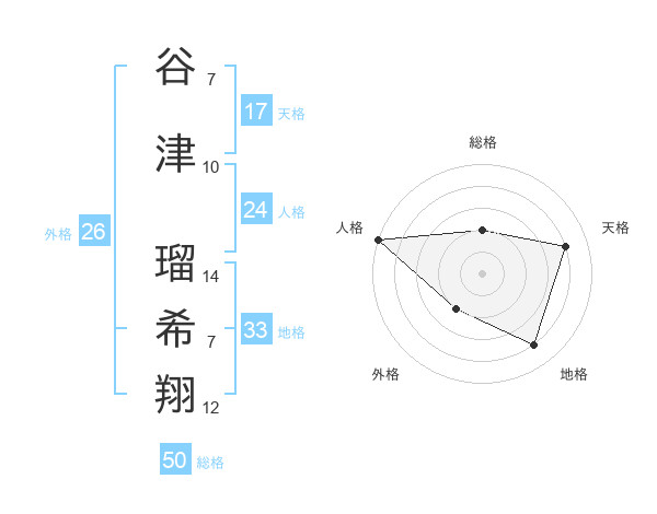 谷津 瑠希翔さんの天格は17画の4点!