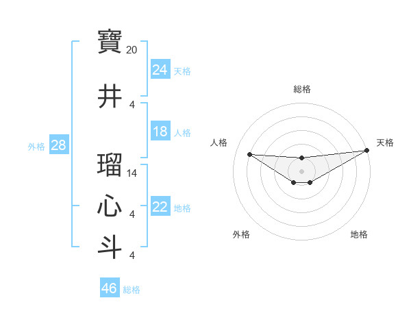 寶井 瑠心斗さんの天格は24画の5点!
