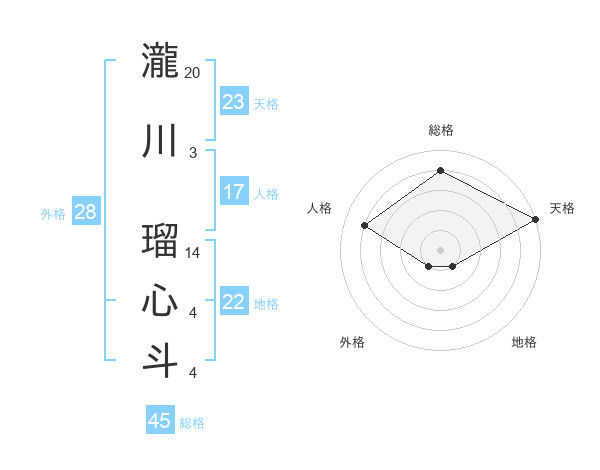 瀧川 瑠心斗さんを姓名の画数から五運を鑑定