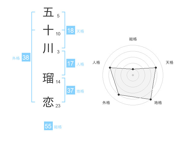 五十川 瑠恋さんの総格は55画の1点!