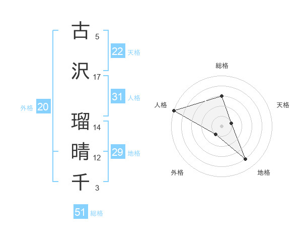 古沢 瑠晴千さんを姓名の画数から五運を鑑定