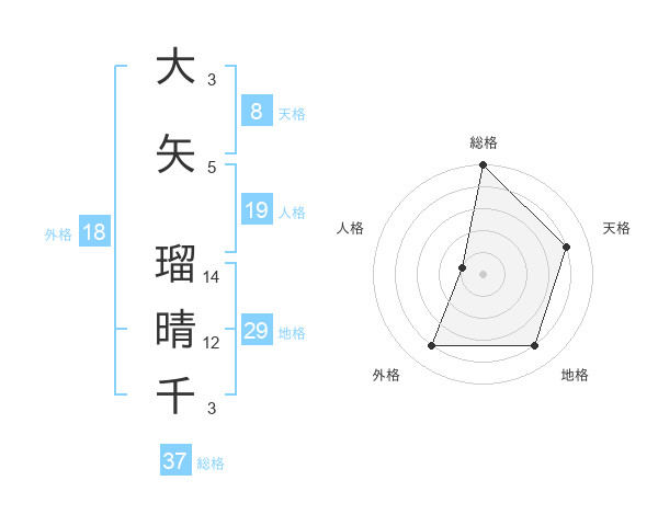 大矢 瑠晴千さんを姓名の画数から五運を鑑定