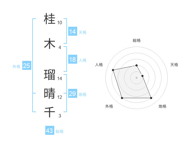 桂木 瑠晴千さんを姓名の画数から五運を鑑定