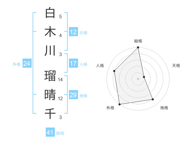 白木川 瑠晴千さんを姓名の画数から五運を鑑定