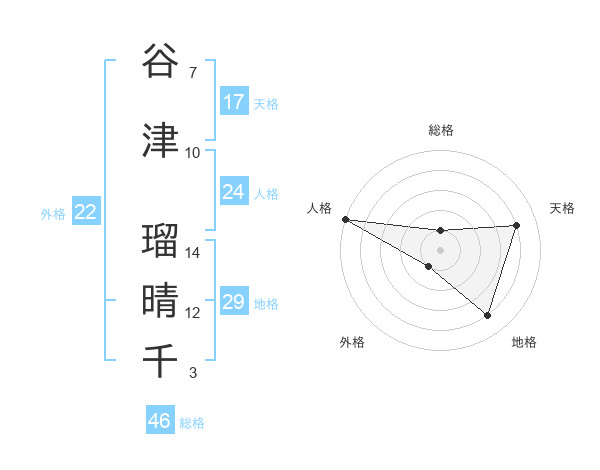 谷津 瑠晴千さんを姓名の画数から五運を鑑定