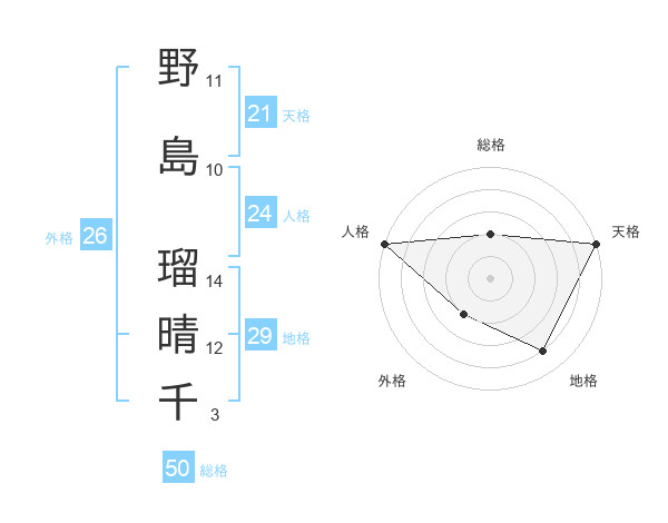 野島 瑠晴千さんを姓名の画数から五運を鑑定