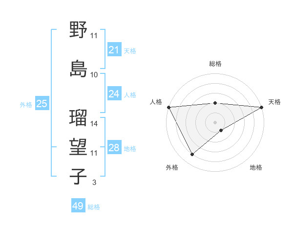 野島 瑠望子さんの天格は21画の5点!