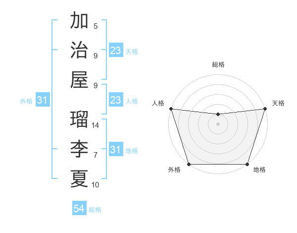 加治屋 瑠李夏さんの天格は23画の5点